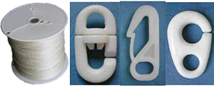 Rope, Clips, Cleats, Pulleys.
